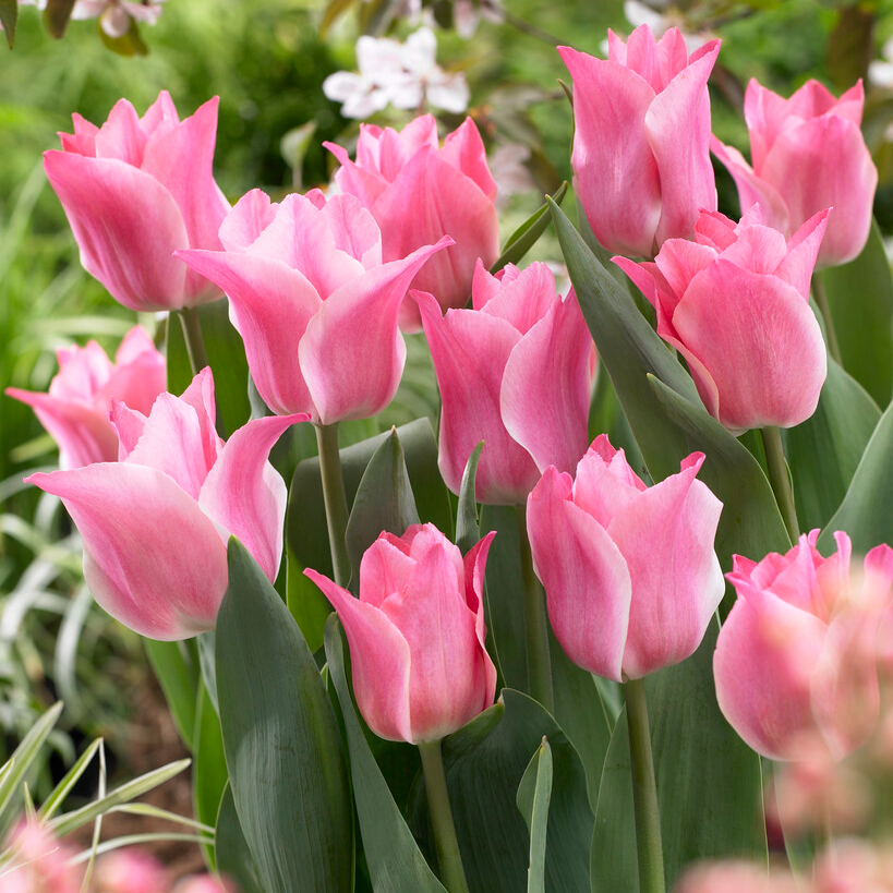 Tulipa ‘Miss Elegance’ lives up to its name with refined, lily-shaped blooms in soft rose pink, gently fading to white at the base. The petals curve outward gracefully, giving each flower a delicate, flared silhouette that adds height and sophistication to spring borders. Flowering in mid to late spring, it is also a lovely choice for both garden beds and vase arrangements.