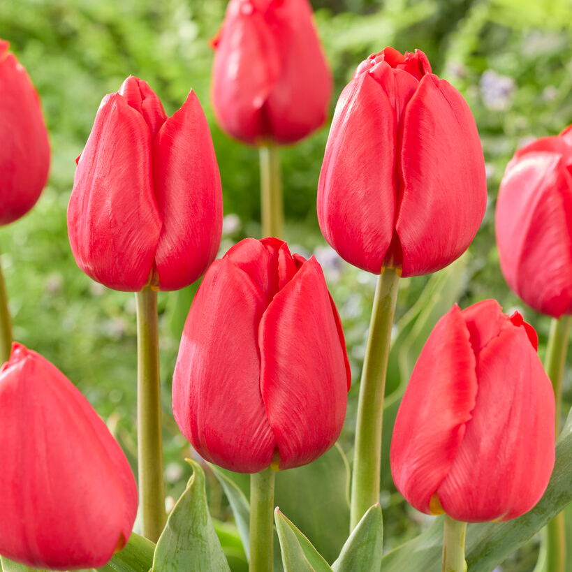 Tulipa ‘Red Stone’ is a strong, early-blooming tulip that delivers a stunning burst of scarlet-red colour. Its classic, cup-shaped flowers create a uniform and polished look, ideal for mass planting, structured beds, or crisp edging in formal borders. It flowers in mid-spring and holds up well in both garden displays and cut arrangements.