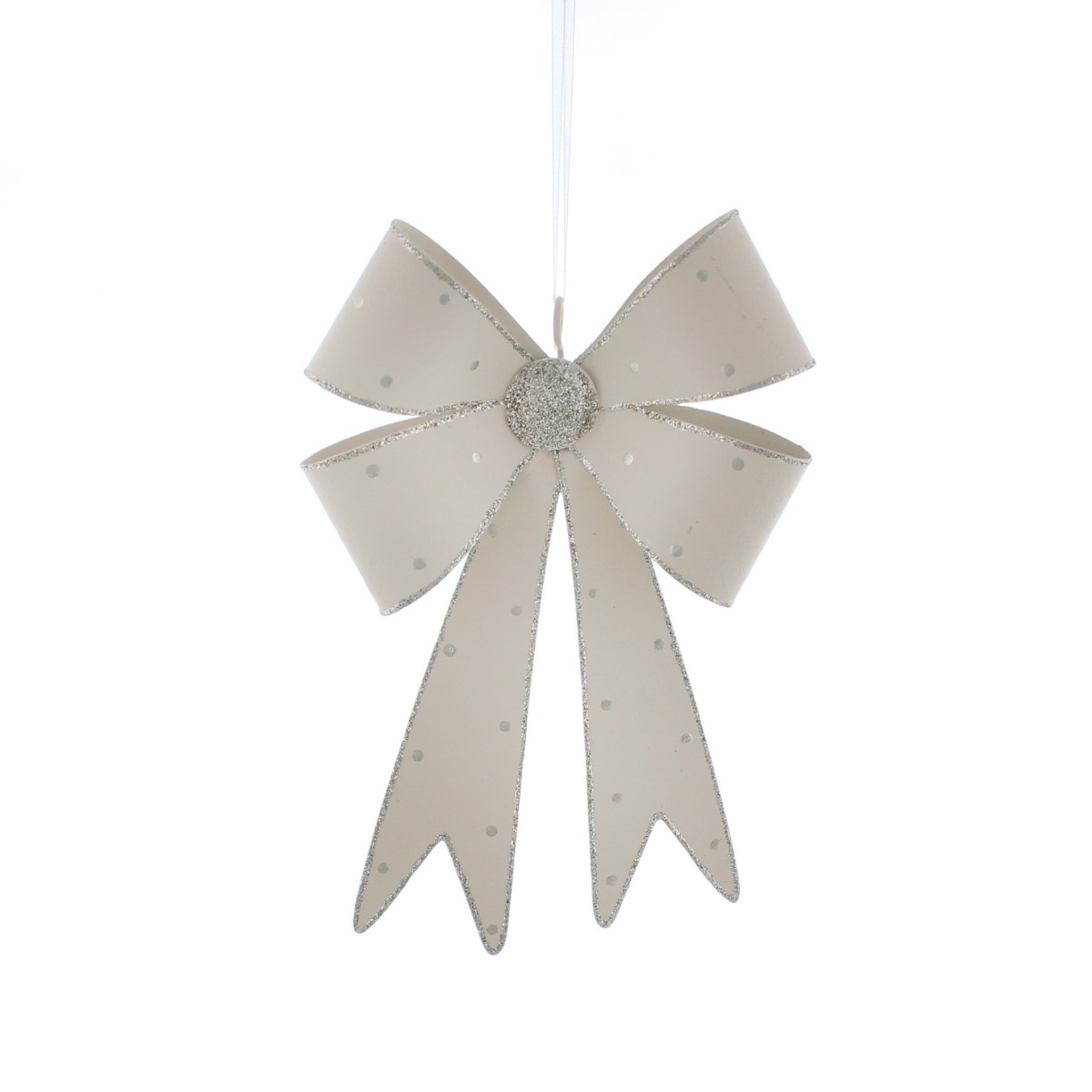 White And Silver Glitter Hanging Bow – Metal Christmas Decoration