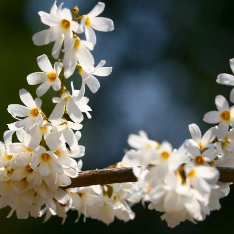 Abeliophyllum, also known as white Forsythia is one of the earliest shrubs to flower each year. It carries slender branches that are covered in white flowers from late winter to early spring. These burst forward from purplish buds that appear along the grey barked winter stems.