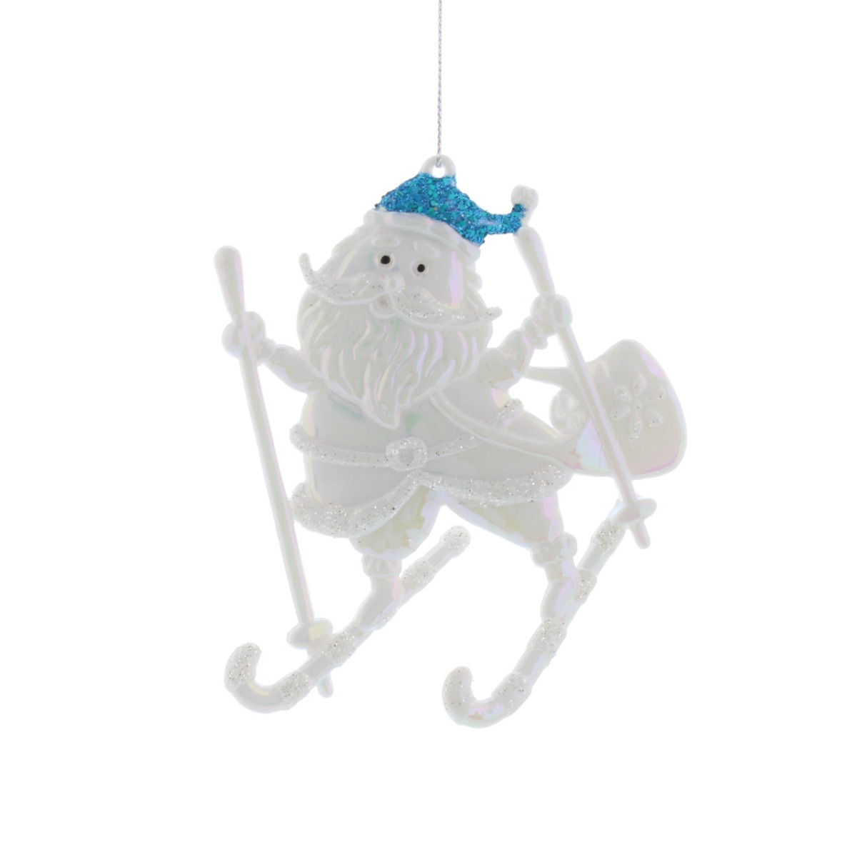 White Iridescent Skiing Santa With Blue Hat – Christmas Tree Decoration