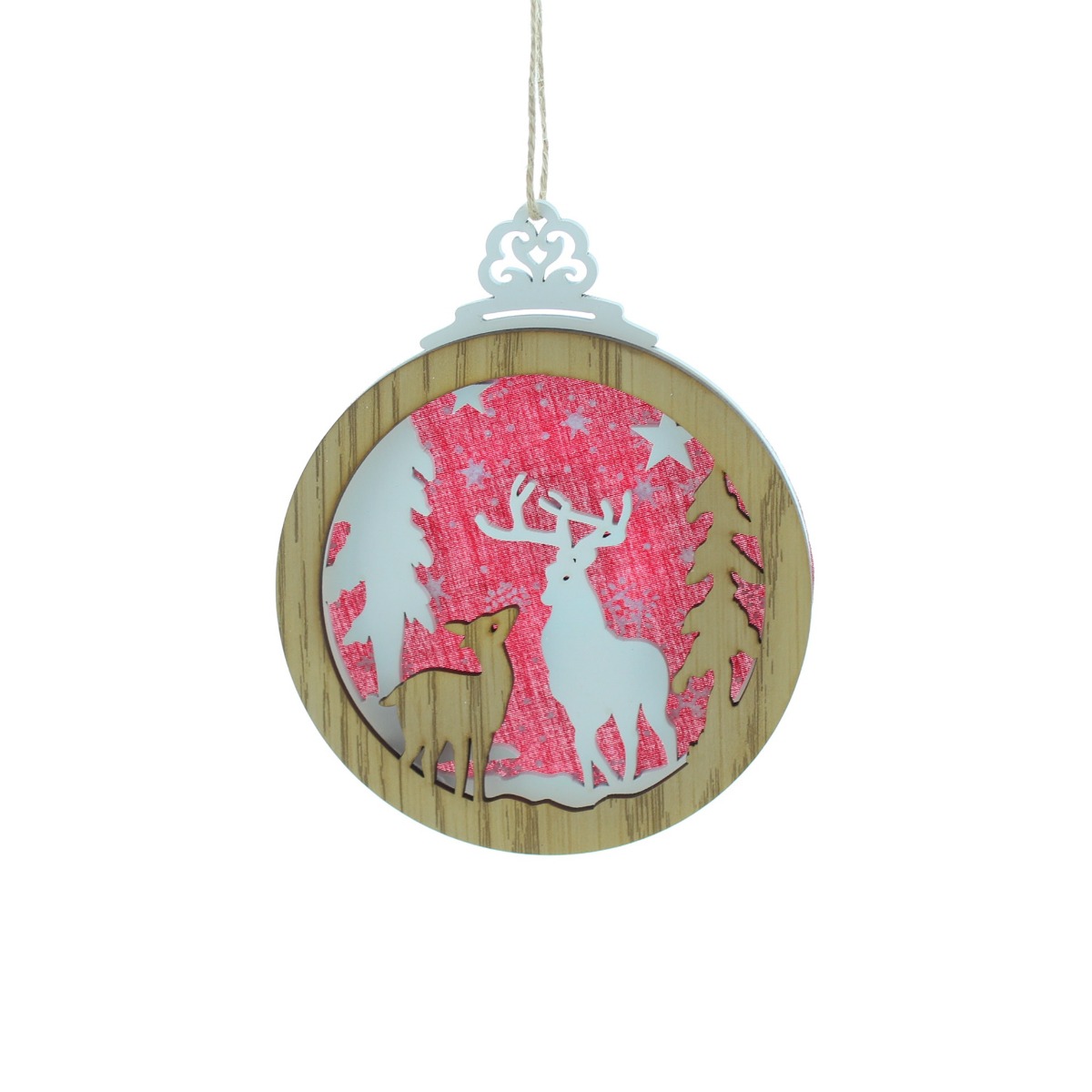 Wooden White And Red Fabric Deer Scene – Christmas Tree Decoration
